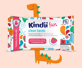 Prawidłowa higiena rąk jest u Dziecka niezwykle ważna. Staranne i regularne mycie rąk mydłem i wodą może uchronić przed wieloma chorobami. Co jednak w sytuacji, gdy nie ma dostępu do bieżącej wody. Świetnym rozwiązaniem są chusteczki odświeżające Kindii Fun z składnikiem antybakteryjnym. Czyszczą, pielęgnują i pozostawiają przyjemny, malinowy zapach. Poradzą sobie nawet z takimi zabrudzeniami jak mazaki czy trawa. Kindii Fun zadba o czyste rączki Twojego Dziecka w każdej sytuacji.