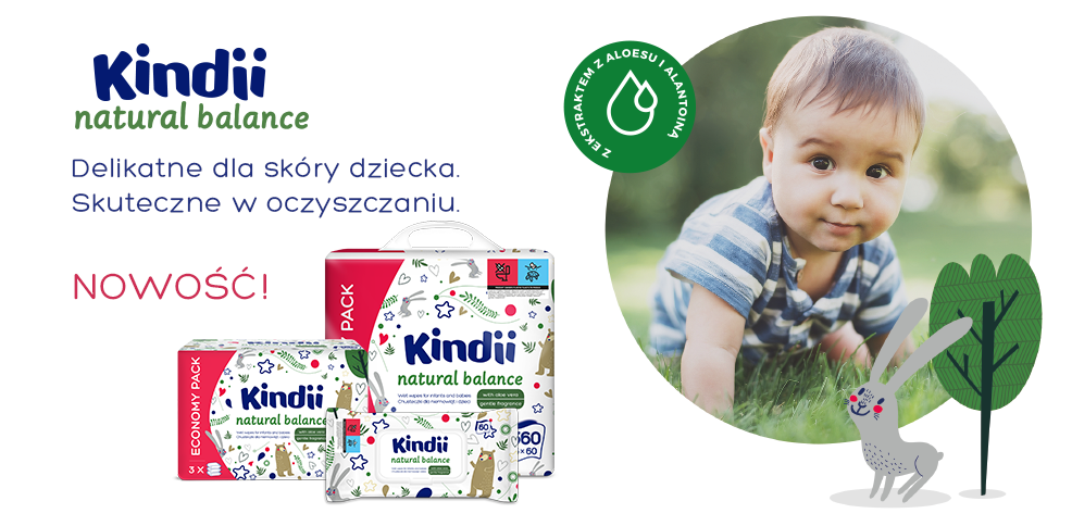 Skóra małego dziecka różni się od skóry dorosłego człowieka. Przez pierwsze dwa, trzy lata życia skóra dziecka nie jest w pełni dojrzała i nie funkcjonuje najlepiej jako bariera ochronna. Dlatego właśnie w tym okresie potrzebuje szczególnej troski i starannej pielęgnacji. Z myślą o tych potrzebach powstała marka Kindii, która obecnie jest jednym z liderów w kategorii produktów higienicznych dla niemowląt i małych dzieci. Kindii oferuje chusteczki nawilżane, a także płatki kosmetyczne i patyczki higieniczne.