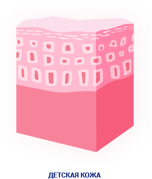 Прежде чем кожа малыша станет зрелой и начнет нормально функционировать, должно пройти около 3-ех лет. До этого времени она более тонкая и менее упругая, из-за чего слабее защищает от таких внешних факторов, как низкая и высокая температура, солнце, химические субстанции и грязь. Кроме того, у нее более нежный гидролипидный слой, слаборазвитые потовые железы и отсутствуют сальные железы, в результате чего она больше подвержена высушиванию.